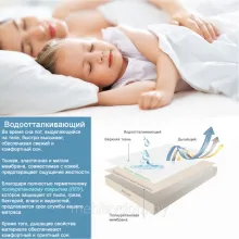 Материал не вызывает аллергических реакций, безопасен для здоровья, не содержит фталатов, не издаёт звуков и сохраняет ощущение поверхности матраса. Резинки по углам обеспечивают плотное прилегание и устойчивость.
